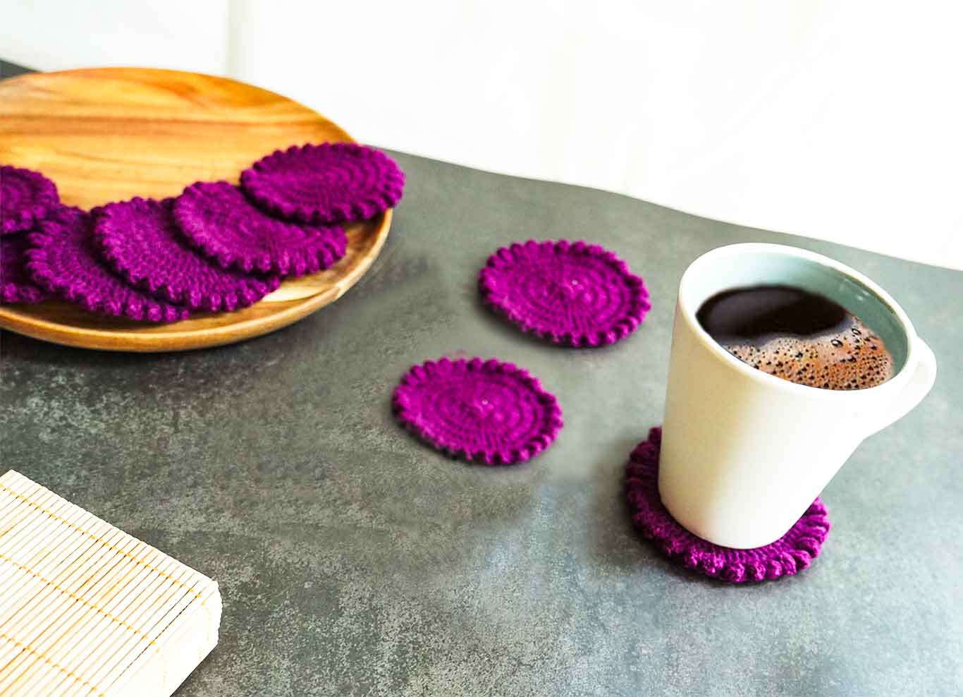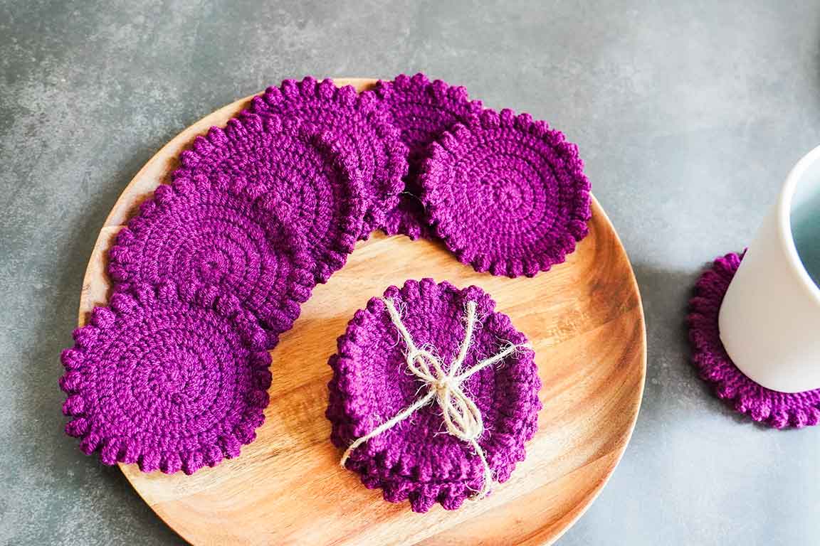 2pc/4pc Crochet Coasters Mats Round Handmade pure Placemats For Cups Coasters Glasses, iPods, Candles, Rings Table Mat Restaurant home Decorations
